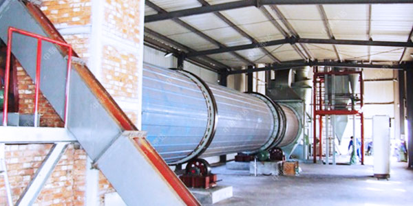 脫水后的濕果渣進入烘干機后,在滾筒內(nèi)均布的抄板翻動下,在烘干機內(nèi)均勻分散與熱空氣充分接觸,加快了烘干傳熱﹑傳質(zhì)。在烘干過程中,果渣在帶有傾斜度的抄板和熱介質(zhì)的作用下,至烘干機另一段排出烘干成品。生產(chǎn)線的工藝參數(shù)和各設備技術參數(shù)及結構的選取和設計是在經(jīng)過對果渣物料的認真分析研究才得出,并經(jīng)過實際果渣烘干試驗的驗證。在方案設計當中、充分考慮到果渣水分含量大、含糖分、粘性大的特點,并采取了一系列新技術和工藝來加以解決,以確保良好的烘干效果。