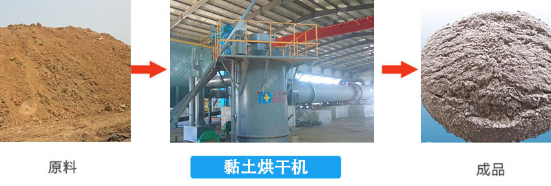 粘土烘干機工作時,粘土經輸送設備送到料斗由加料機送入粘土烘干機的加料端,通過傾斜的加料管道順利進入筒體內。筒體在工作過程中是呈緩慢的旋轉運動的,且與水平線呈一定的傾斜角度。粘土是從高端進入筒體的,在重力作用下緩慢向低端行進,與此同時,載熱體由低端導入,不斷向高端沖擊,與粘土物料進行逆向接觸,在兩者接觸的過程中完成對粘土的烘干。另外,筒體內設有抄板,可將粘土物料不斷的抄起又灑落,大大加大了粘土與載熱體的接觸面積,提高了烘干的速率。